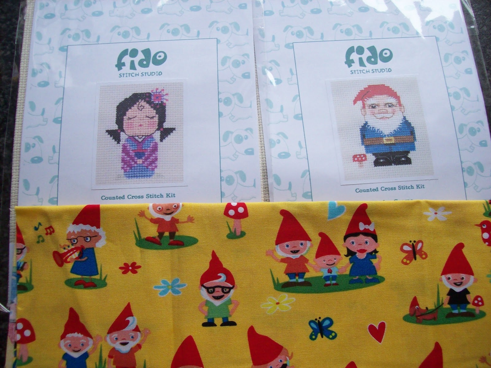 Two super cute cross stitch kits and the sweetest gnome fabric.